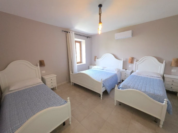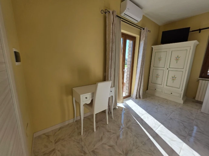 La camera 2, Tino, è una camera matrimoniale con accesso diretto a una terrazza soleggiata, ideale per letture o una colazione all’aperto con i primi raggi del mattino.