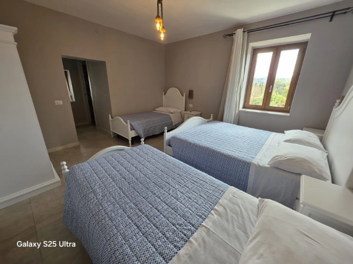 La camera 4, Tralcio, la più ampia, perfetta per nuclei familiari, con due letti matrimoniali, grande finestra sul Matese e comfort pensati per soggiorni prolungati.